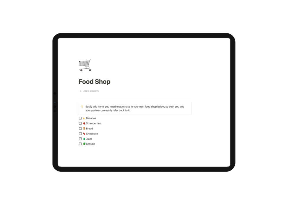With this template, you can collaborate with your partner to create a comprehensive shopping list that includes all the items you need. Your partner will be able to see the updated list in real-time, meaning both of you can take shared responsibility for the food shop.